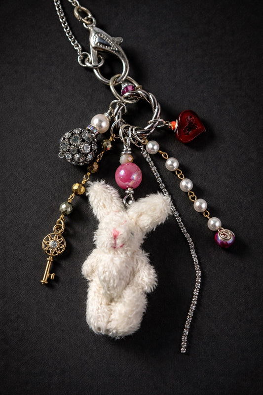 White Bunny Charm Necklace with Interchangeable Pendant
