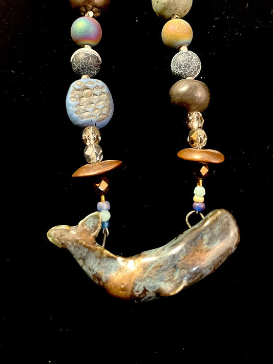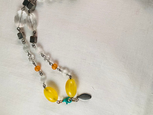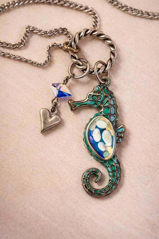 Sea Glass & Tides Beaded Necklace with Sea Turtle Charm