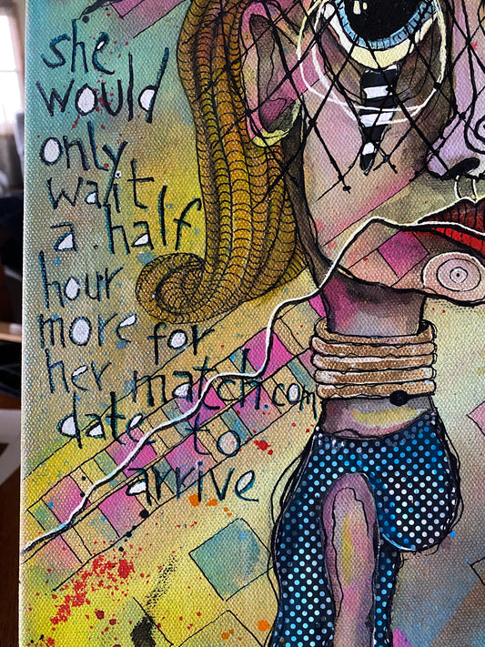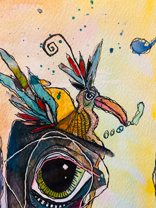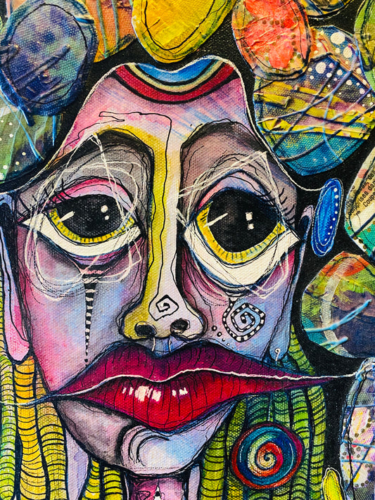 A little wild, a little weird-and maybe a little too familiar. The People You Might Know collection dives into human quirks and tangled emotions with humor and heart. Each mixed-media piece is packed with color, texture, and personality-the kind of faces that make you laugh, think, and wonder if you've sat next to them at a dinner party