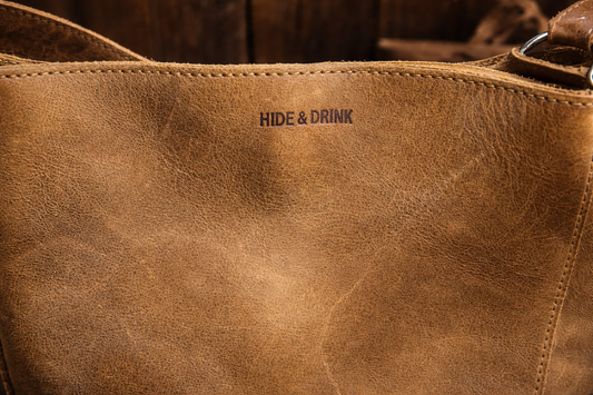 Hide & Drink Distressed Leather Tote with Plaid Interior & Artisan Charm