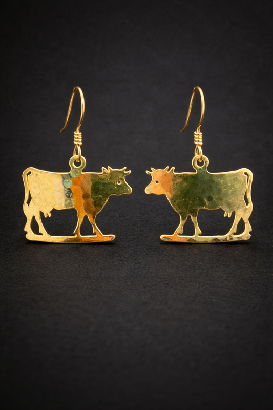 Golden Prairie Cow Earrings Pounded Gold Western Dangle Cuties