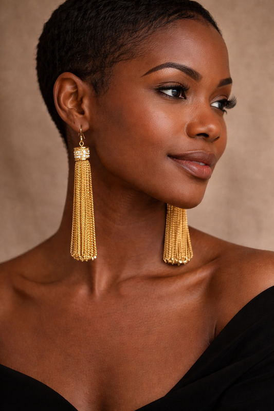 Golden Hour Fringe Shoulder Dusters Vintage Sparkle Chain Statement Earrings