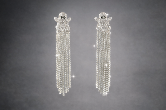 “Glam Ghost Fringe Earrings” Vintage Rhinestone Statement Drops