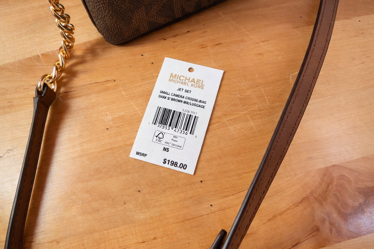 - • Gold tone Michael Kors logo hardware