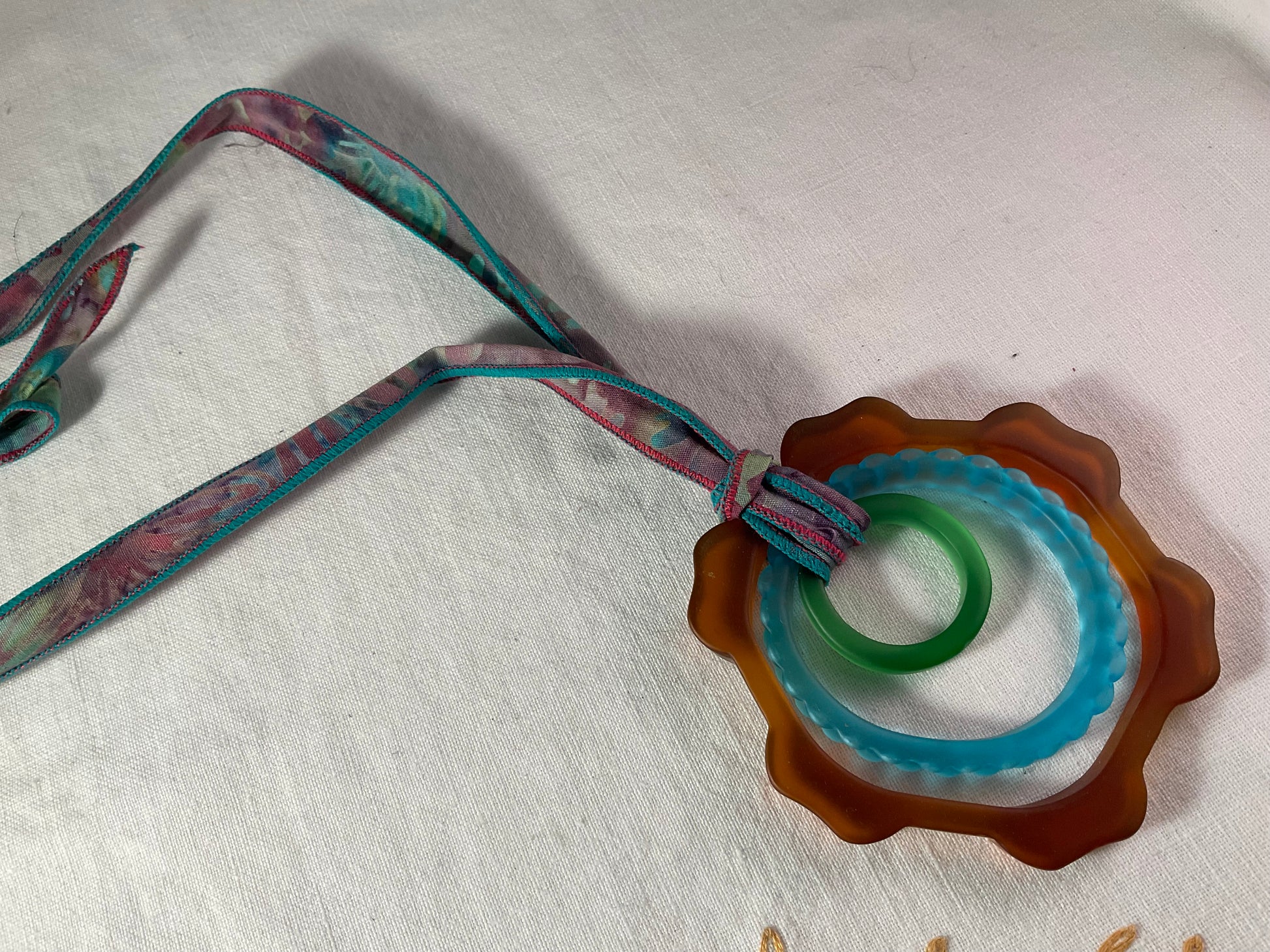 Necklace - Beach glass gear rings 20" ribbon