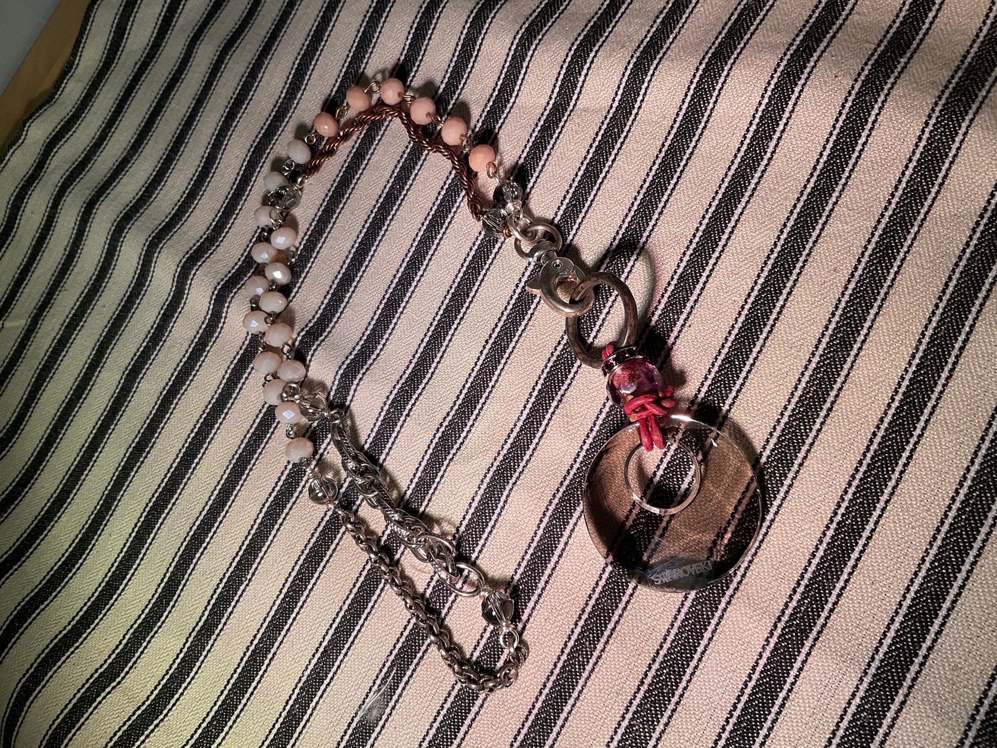 This stunning necklace features a premier Austrian Crystal pendant that can be interchanged with different chains. The chain is made of check glass rolled copper silver and has a swivel clasp for easy wear. The elegant pendant measures one and a half inches and is tied with red leather, adding a touch of beauty to any outfit. Elevate your style with this exquisite necklace.