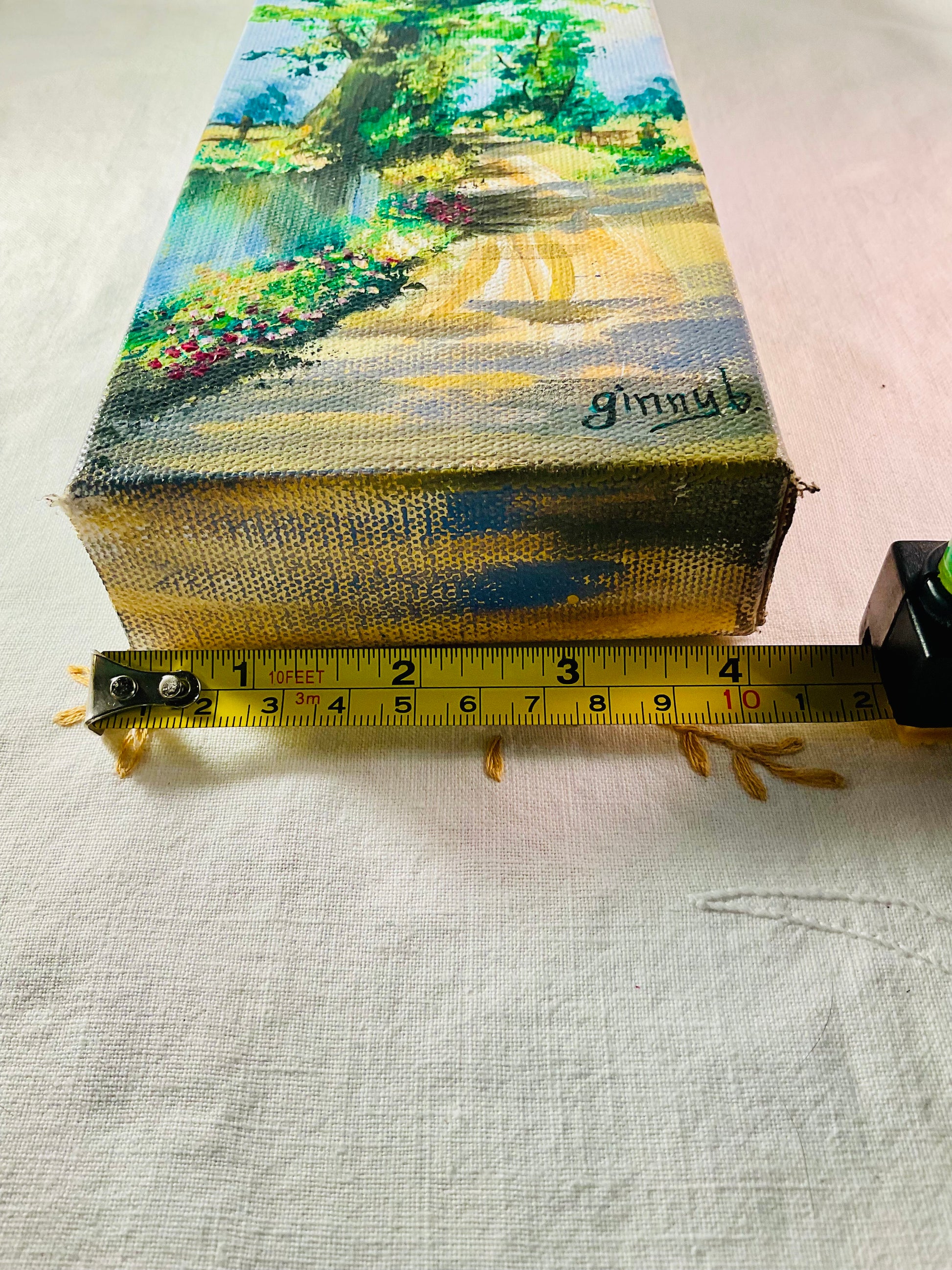 Escape down a winding country road with this charming acrylic painting! This small but mighty artwork captures the peaceful beauty of rural landscapes in vibrant detail. Perfect for adding a touch of countryside charm to any space, whether displayed on a shelf, desk, or gallery wall. At 12" x 4" x 1.5", it's the ideal size for tucking into cozy corners or creating an eye-catching accent. Let your favorite scenic route inspire your everyday moments.