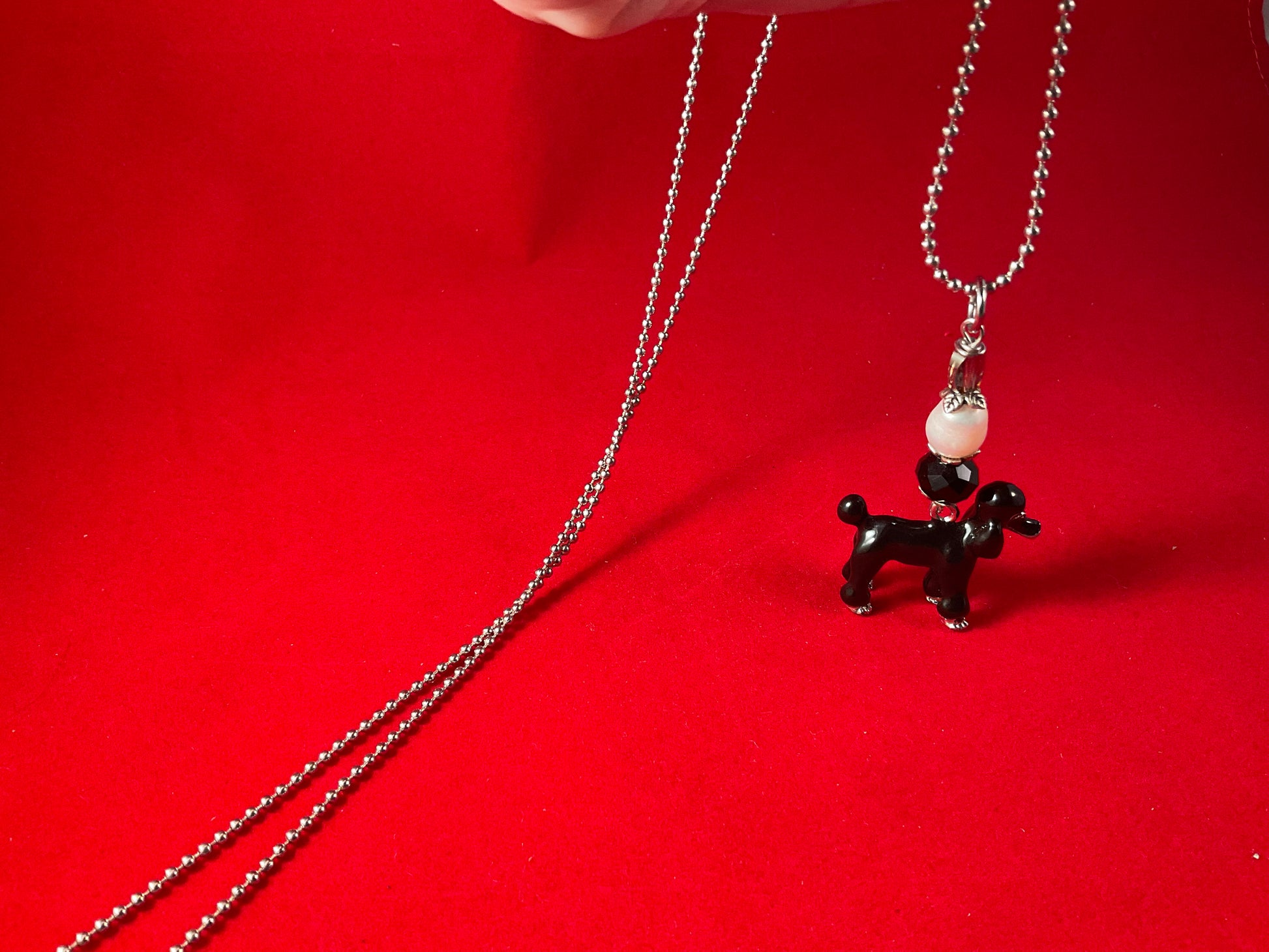 Parisian Poodle Crystal Necklace – Enamel Dog on 32” Silver Ball Chain