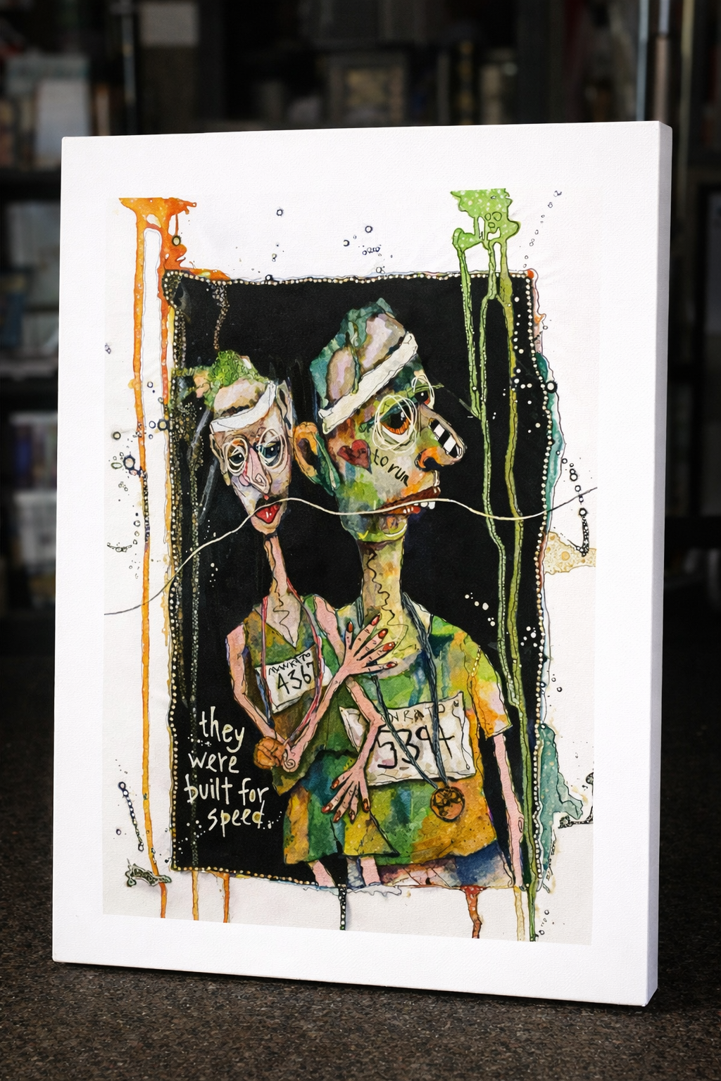 They Were Built for Speed is a darkly humorous take on ambition, competition, and the beautifully absurd extremes of human effort. Featuring two exaggerated, skeletal marathon runners mid-stride, this piece blends satire with striking visual storytelling.