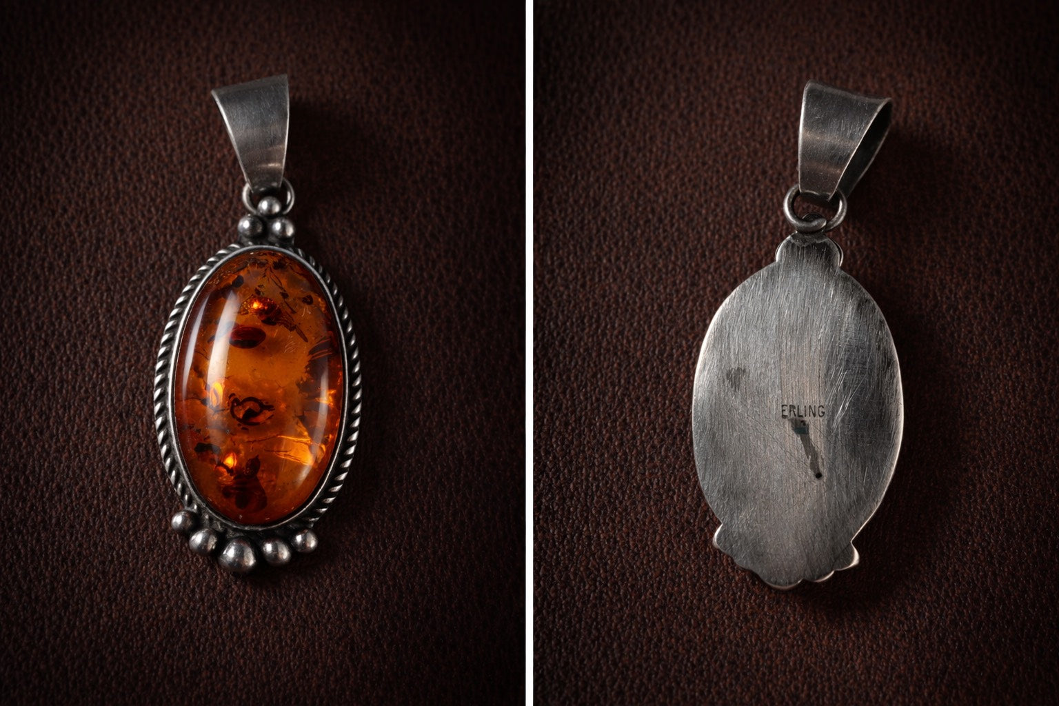 Marked stERLING on the reverse, this piece reflects quality craftsmanship and classic design. The warm glow of the amber pairs effortlessly with both casual layers and elevated looks, making it a versatile statement piece.